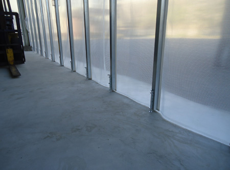 床に穴をあけ、棒を差し込んでいるので風が吹いてもバタつきません。